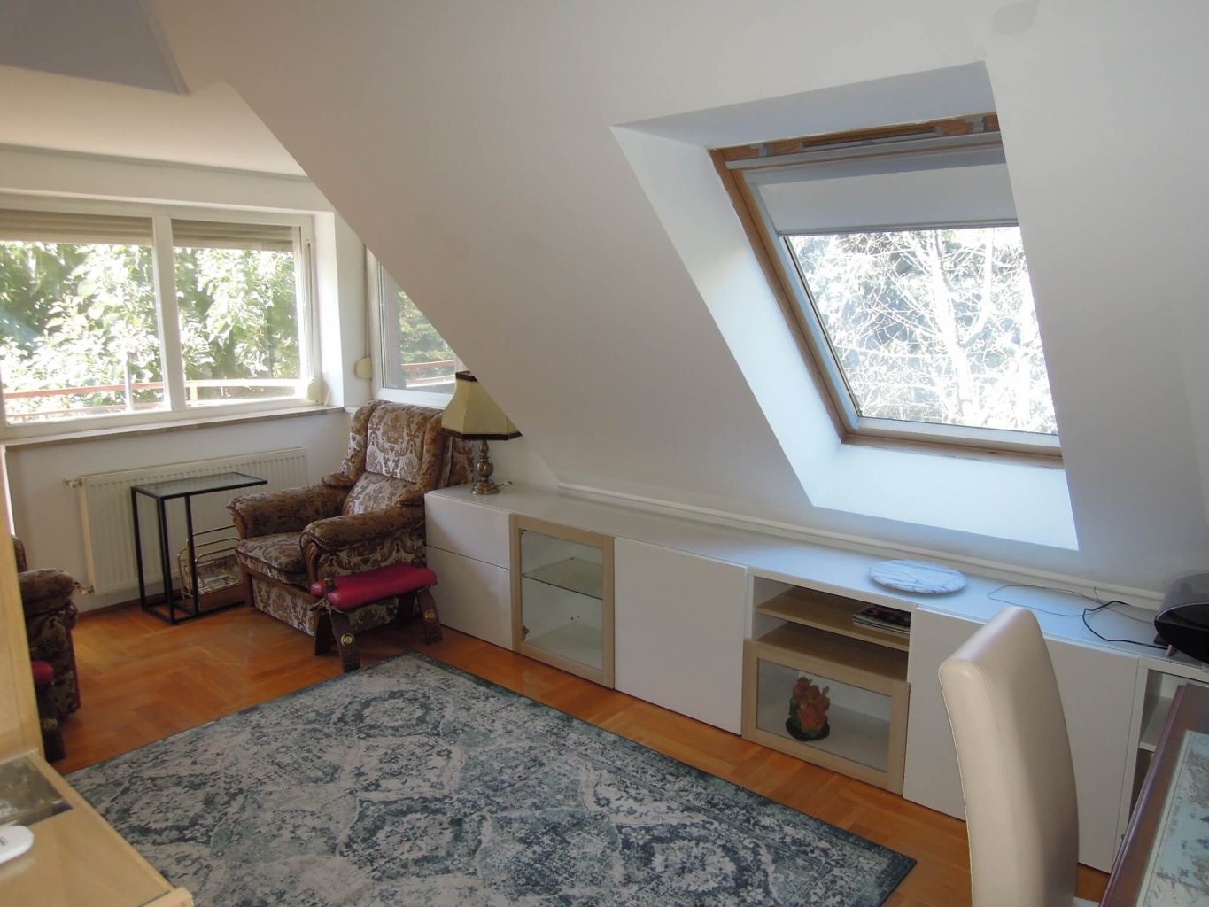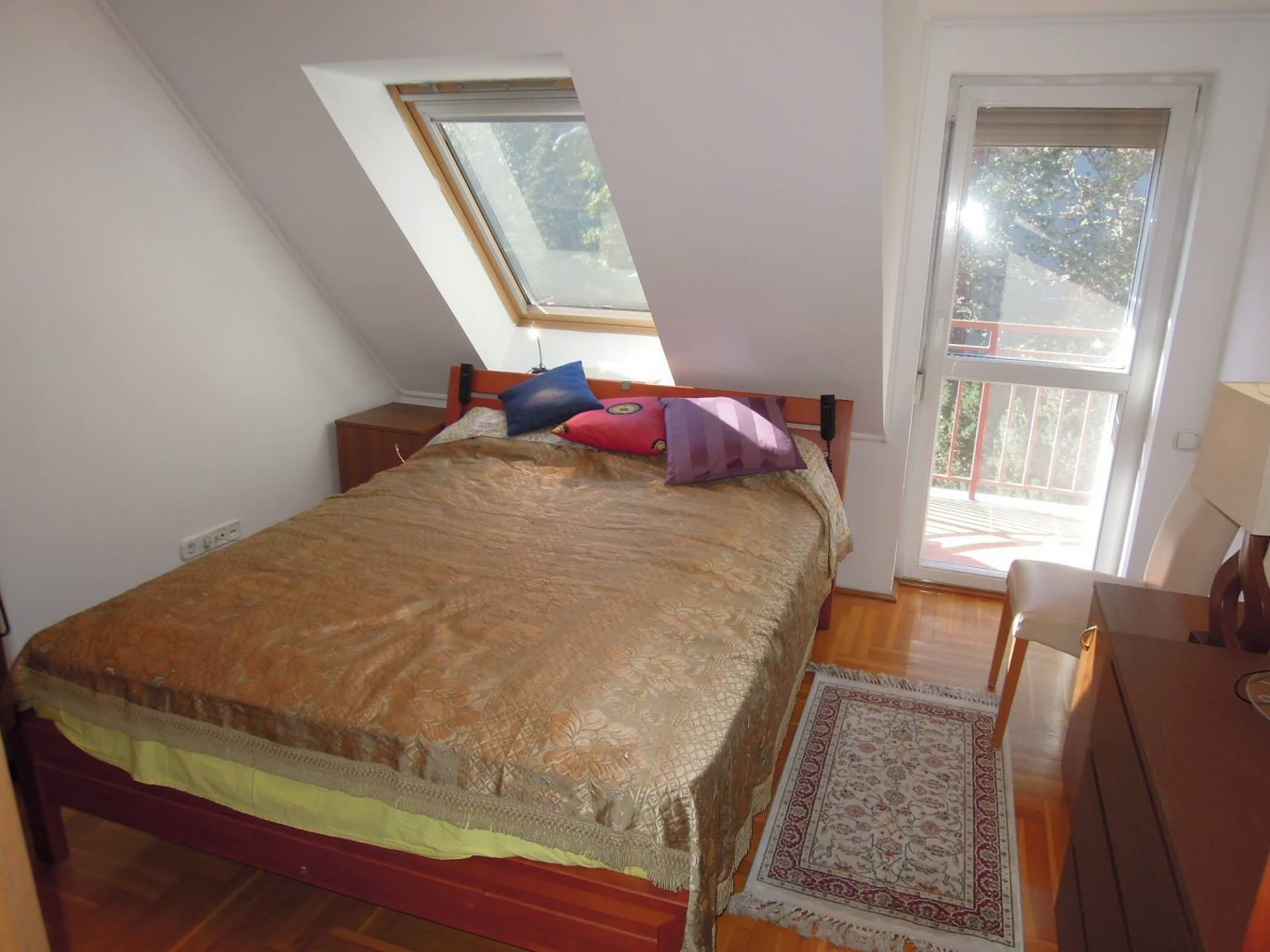 Az örmezői lakótelep szélén, de családi házas övezetben fekvő lakás a 3 szintes társasház felső szintjén van. Az összkomfortos lakásnak három erkélye két fürdőszobája és egy külön álló WC-je is van.